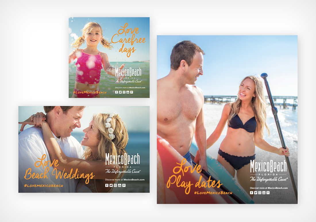 As the agency of record for the Mexico Beach Community Development Council in Mexico Beach, Florida, since 2012, The Idea Boutique has been consistently working to maintain and improve the town’s branding and advertising efforts. It has paid off, as this year Mexico Beach CDC reported a bed tax collections increase of 67 percent since 2014! Our latest brand refresh for the town came with the “Love” campaign. Sometimes the simplest way to promote something is through expressing ad reinforcing what people already think about it. The prevailing sentiment when it comes to this charming little beach town is LOVE. The Idea Boutique planned and executed a photo shoot to capture new images throughout the town for this campaign. The finished product shows all the things to love about Mexico Beach with a series of print and online ad designs, along with videos made for TV and online, e-mail newsletters, and more. Check out more on our Mexico Beach project page!