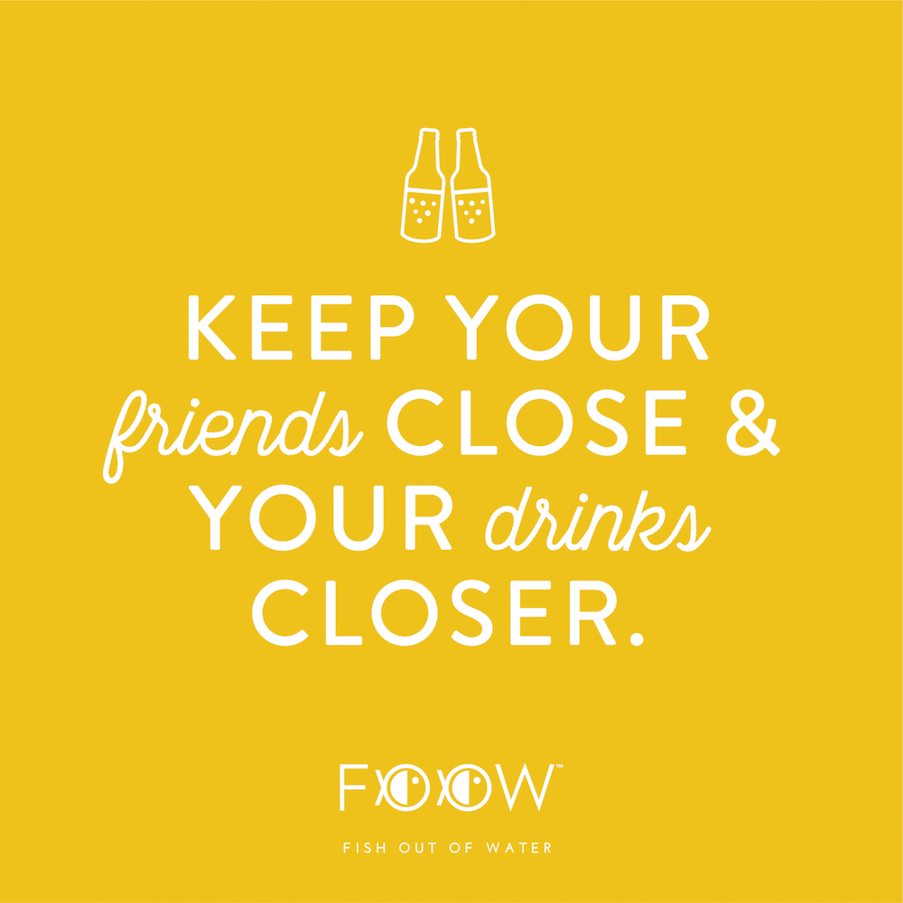 The first step came with creating a new logo that would become the brand identity for the restaurant, which The Idea Boutique proposed renaming with the acronym FOOW, pronounced “foo.” This modernized update to the existing brand allowed us to have fun with the project, from a playful yet classic logo with two fish to designing coasters, napkins, and apparel with fun sayings that incorporate FOOW and fun quotes about dining and celebrating life. The deck area was christened FOOWbar, while the private dining area is called the FOOWroom.